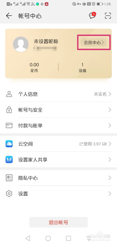 进入账号中间本家儿界面后,点击会员中间。