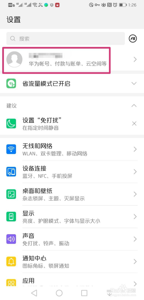 打开华为手机设置界面,点击华为账号。