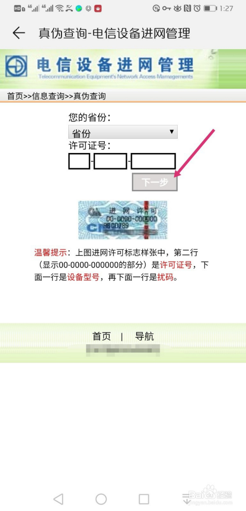 进入查询界面,选择省份、输入许可证号,点击下一步。