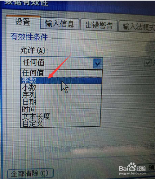 点击设置,选择整数