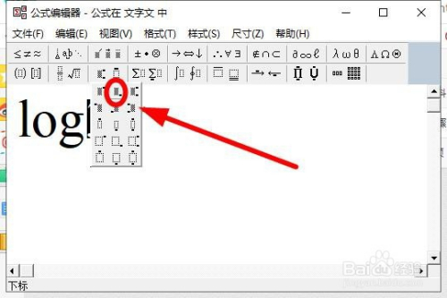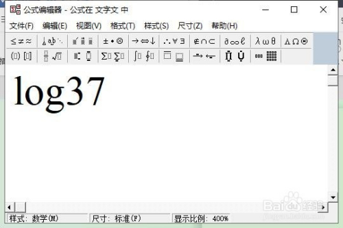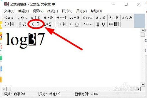 弹出一个“公式编纂器”。在公式编纂器中首先输入“log37”