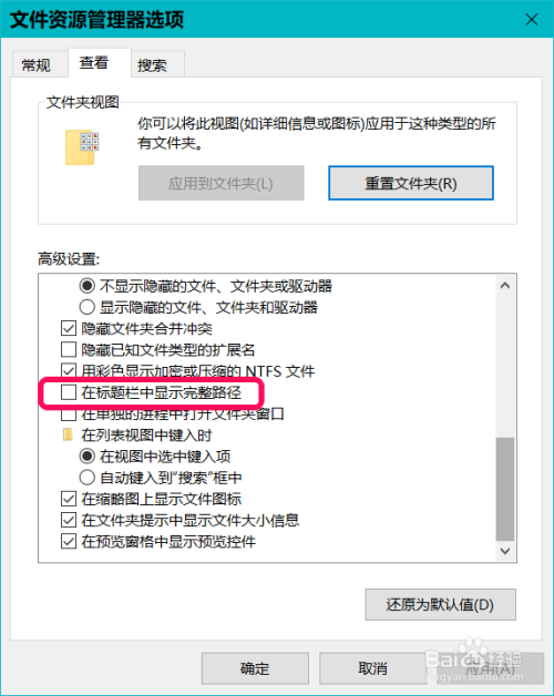 在Windows 10系统题目栏中查看文件或文件夹完整路径的设置方式
