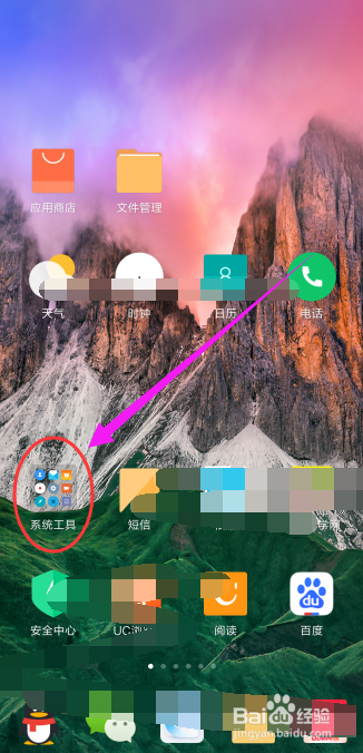 打开小米手机,点击手机系统东西夹,如图所示