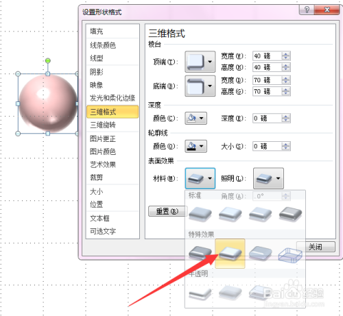 调节棱台参数,在此我将其都设为40,即可呈现一个粉色三维球。