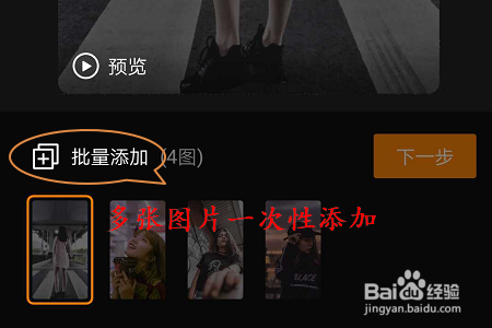 在建造页面,我们可以点击“+”符号逐张添加图片,也可以点击左下方的“批量添加”一次性选择多张图片,如下图所示...