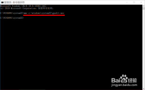 进入后主动运行办理员cmd.exe窗口,我们输入mmc c:\windows\system32\gpedit.msc号令,打开组策略当地编纂器。