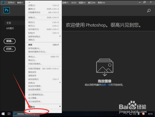 打开PS后,点击软件顶部东西栏上的“编纂”