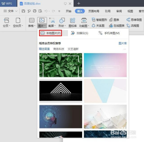 第一步:打开一个空白的wps文档,单击选择菜单栏“插入”中的“图片--当地图片”。