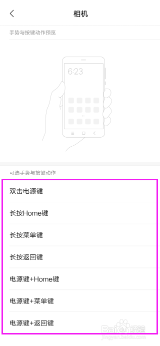 在手势及按键快捷体例页面,你就会看到有个相机的选项,点击进行选择,如图所示