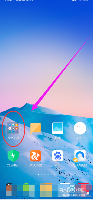 打开小米手机,在手机桌面,点击系统东西夹,如图所示