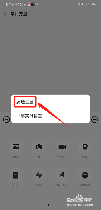 微信会主动定位到你当前的位置,直接点击发送就可以了;