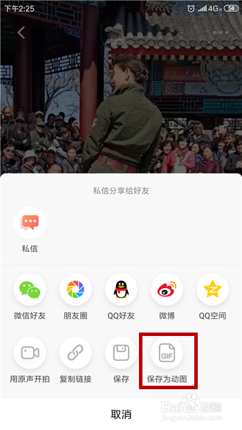 点击打开分享界面后可看到【保留动图】功能,点击筹办保留着为动图。