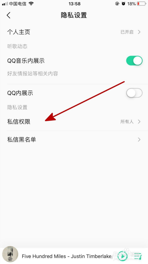 在利用QQ音乐的同时还可以结交,那么为了不被骚扰,在这里我们可以设置私信权限。