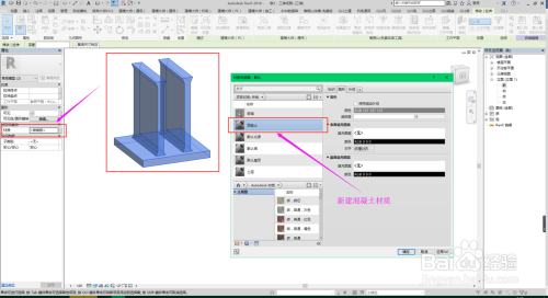 最后设置材质,框选中所有构件,新建混凝土材质。