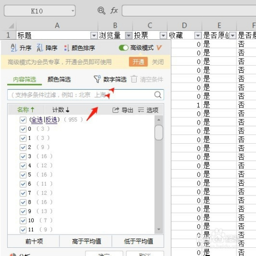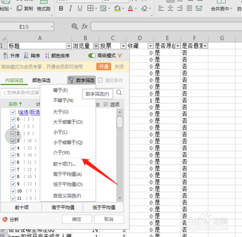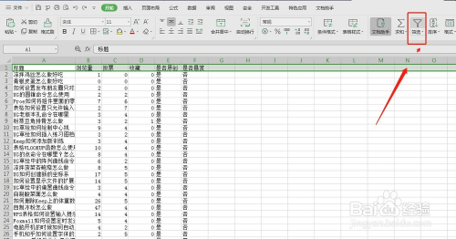 我们以浏览量为例,我们选择浏览量旁边的小三角符号