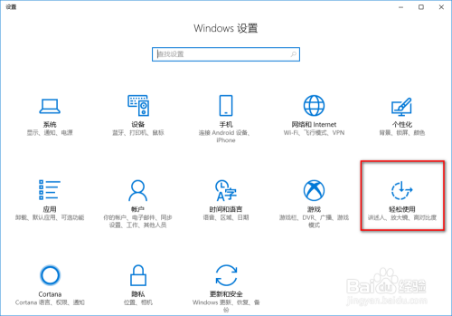 点击设置窗口中的“轻松利用”;