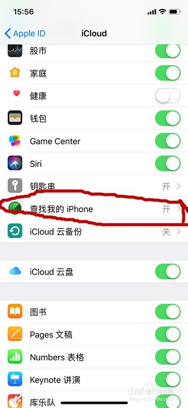 在页面上找到查找我的iPhone,点击打开。