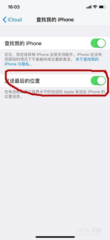 只要把这个开关打开即使iPhone X丢掉关机后也会查看到位置。