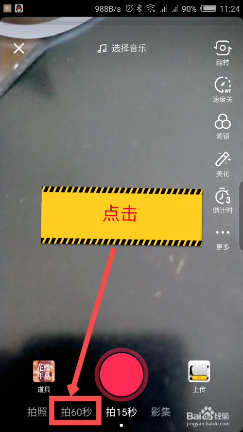 在打开的拍摄视频界面,选择底部的拍60秒。如图
