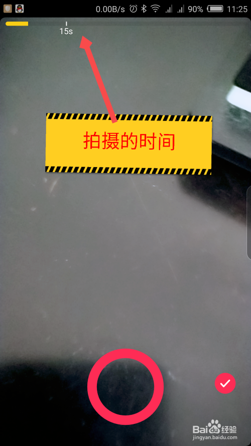 长视频拍摄完当作后,点击底部的右边对号√,完当作拍摄。如图