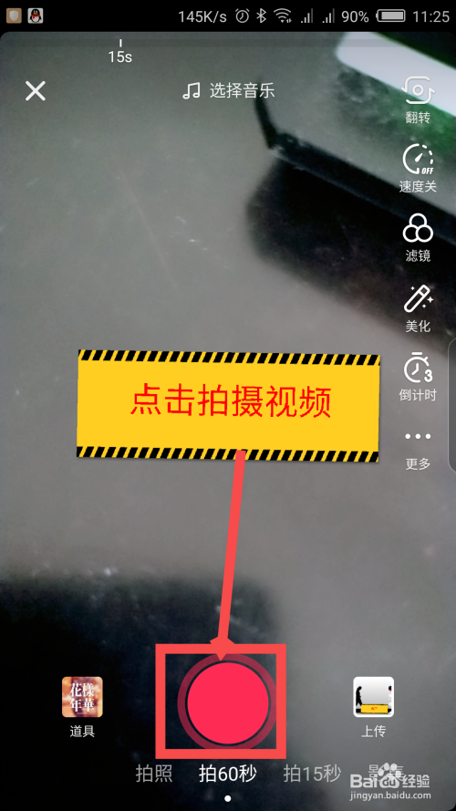 选择好60秒长视频后,就可以点击拍摄按钮,起头拍视频。如图
