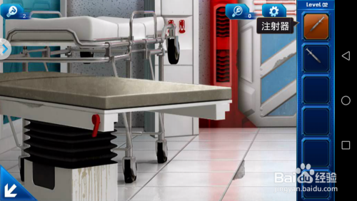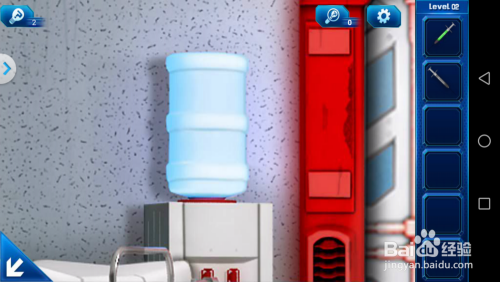 点击大门左面的饮水器,操纵针管将饮水器里面的水吸出来一管。