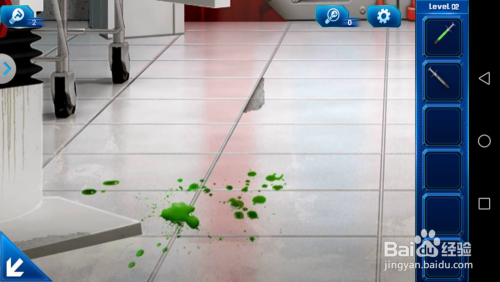 点击地面中心的平台,将上面的两个针管拾取起来,操纵一个针管将地面上的绿色液体吸起来。