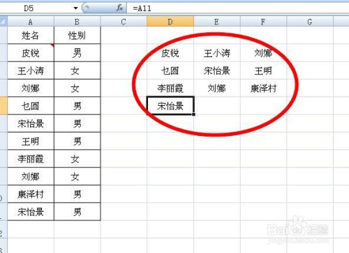 单击“确定”后再单击“封闭”即可获得多列显示的本来在A列显示的姓名