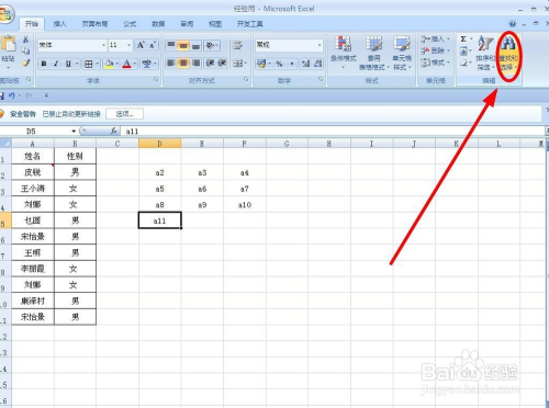 打开要进行处置的Excel文档,需要把A列的姓名转换当作多列的形式