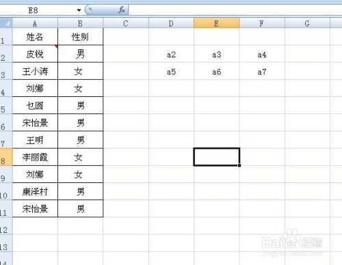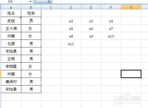 把余下D4-F4单位格输入“a8”“a9”“a10”,D5单位格中输入“a11”