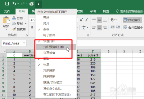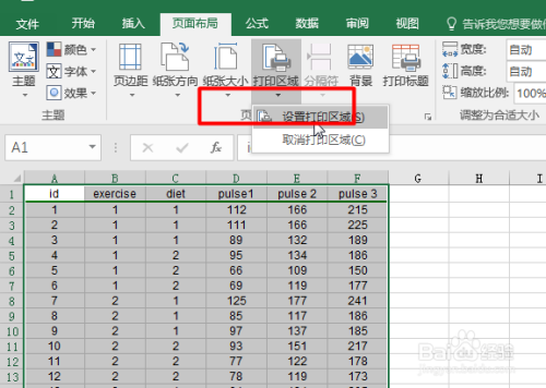 接着点击【页面结构-打印区域】,选中【设置打印区域】