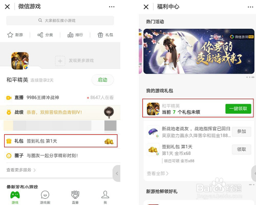 若是用微信登录账号的话,可以打开微信在“发现”中可以点击“签到”可以领取金币.