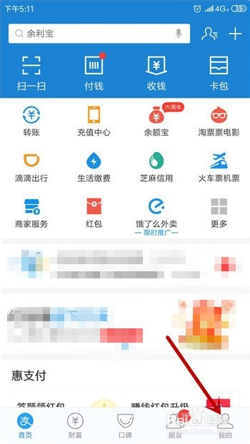 点击打开支付宝,在首页里点击底部导航栏的【我的】。