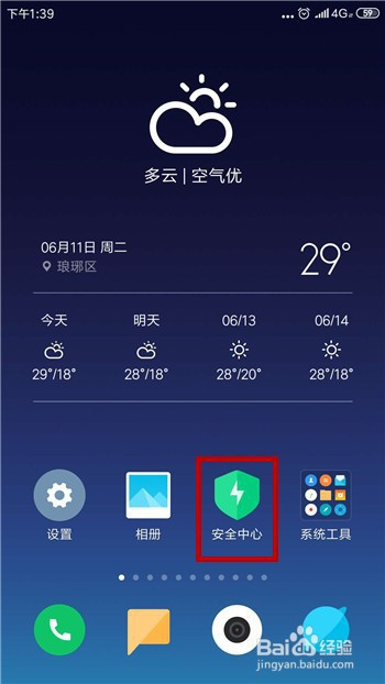 按时开关机的设置是在系统的平安中间里,点击打开【平安中间】。