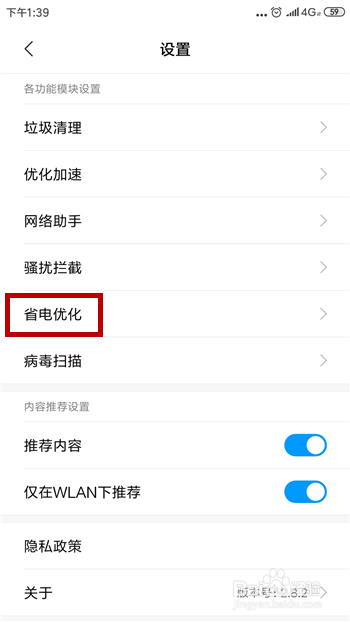 打开了平安中间的设置界面后找到并点击【省电优化】功能。