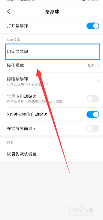 来到悬浮球的页面,点击自界说菜单,如图所示