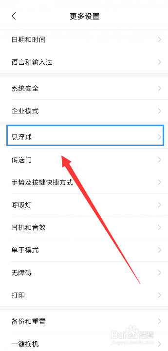 来到更多设置的页面,你可以看到有个悬浮球的选项,如图所示