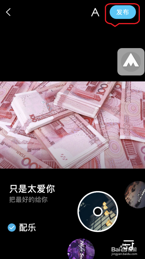点击拍摄按钮或从相册选择素材,选择配乐。