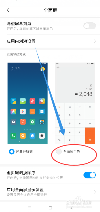 来到周全屏的页面,点击周全屏手势的选项,如图所示