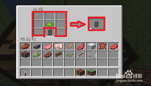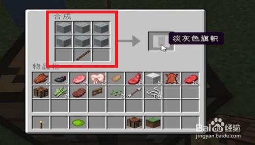 然后,我们把羊毛块和木棍按照以下的摆列体例进行摆列,就可以当作功合当作出一个旗号啦~