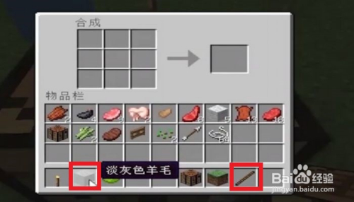 首先,我们需要汇集一些材料,至少需要6个同样颜色的羊毛块和1个木棍。
