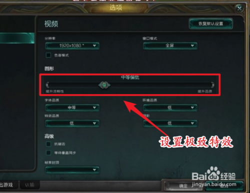提高lol游戏的fps路子三:在电脑硬件设置装备摆设许可的环境下,将游戏的特效开到极致。