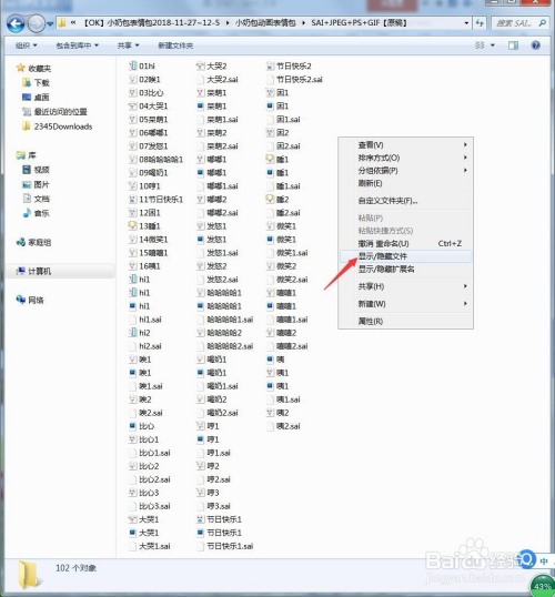 1、可以在文件夹中,鼠标右键,点击显示或埋没扩展名。