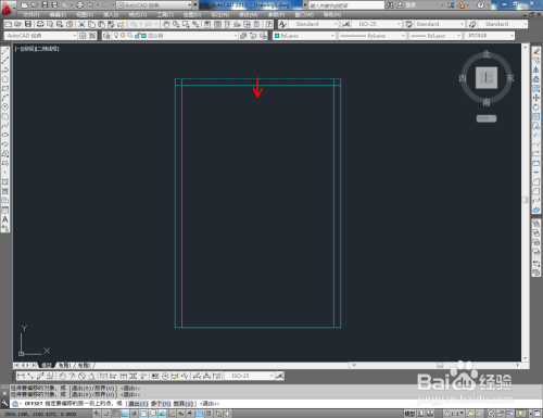 点击右边东西栏中的【偏移东西】,在号令栏输入偏移数值:25后,对摆布双方以及顶边进行标的目的内偏移操作。在号令栏输入偏移数值:80后,对图案底边进行标的目的上偏移。完当作后按图示调整好偏移线条上的节点(如图所示);