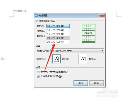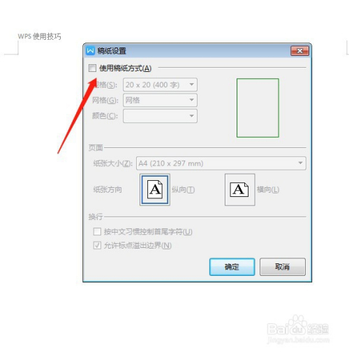 勾选上利用稿纸的体例