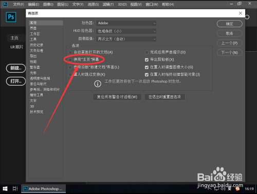 本教程演示Adobe Photoshop CC 2019打开时跳过本家儿页直接进入编纂界面