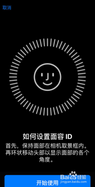 点击起头利用,录制面部环境,注重面部要在取景框内,并且要三维视角,头部需要扭动,否则很难识别当作功,当面庞已经设置,点击完当作;