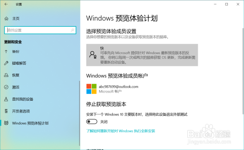 第三项:选择预览体验当作员设置 更改为【快】。