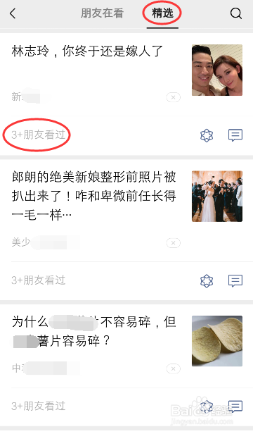 进入看一看页面,在【精选】页面,可以看到有几多老友看过的文章。