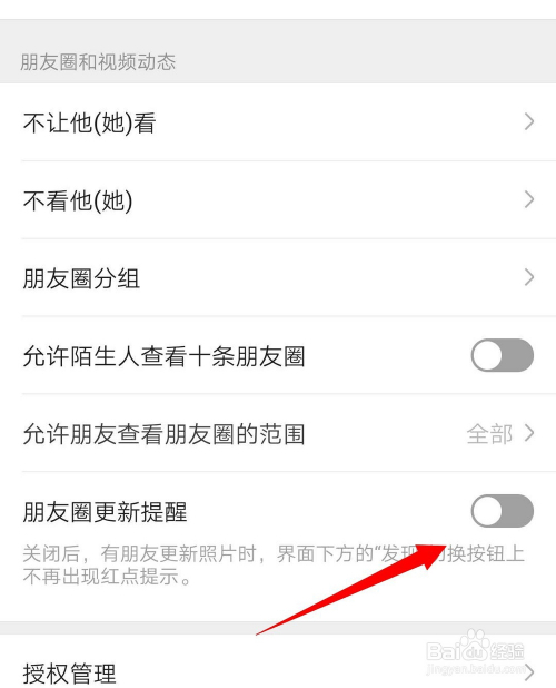 如图所示,已封闭朋友圈更新提醒。